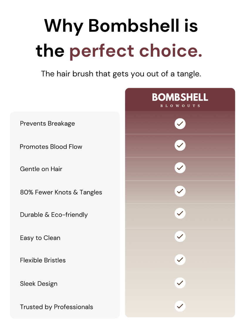 Achieve salon-worthy hair at home with the Bombshell blow dry brush, designed to detangle effortlessly and reduce static for smooth, polished results. Perfect for medium to long hair, this brush is a must-have for your daily styling routine.