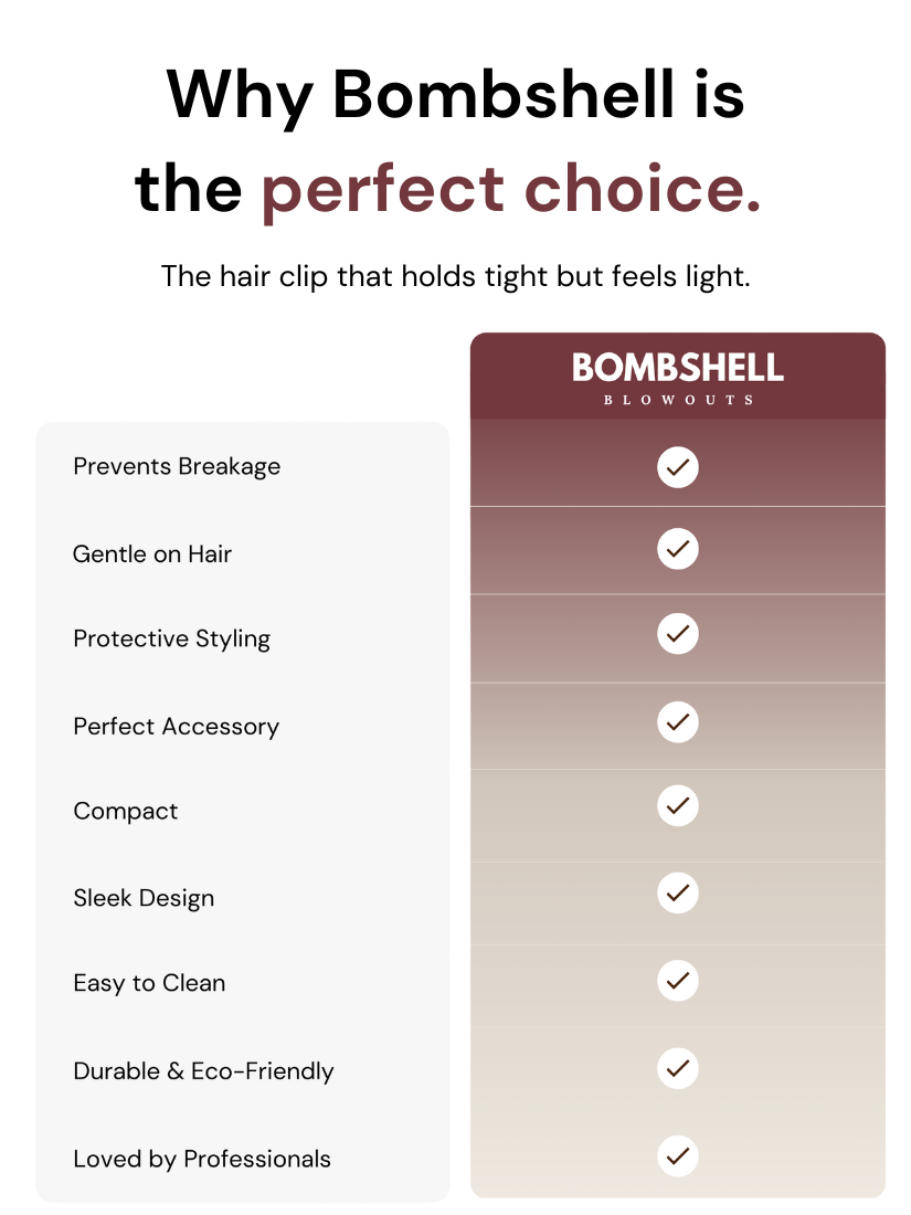 Our hair clips are designed with a smooth, no-crease finish to minimize the risk of dents in your hair. They’re perfect for holding your curls or sections in place without disrupting your style.